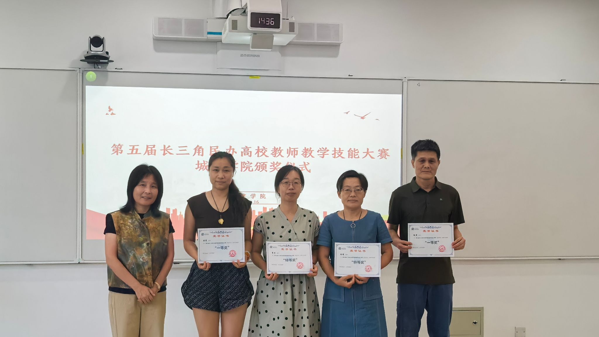 随后进入颁奖环节,金小群经理为 “第五届长三角民办高校教师教学技能大赛” 中院级获奖的胡娟、李珏、张蕾、陶涛四位教师颁奖,赞扬他们教学功底与创新理念,鼓励教师以他们为榜样,提升教学素养、提高课堂质量。