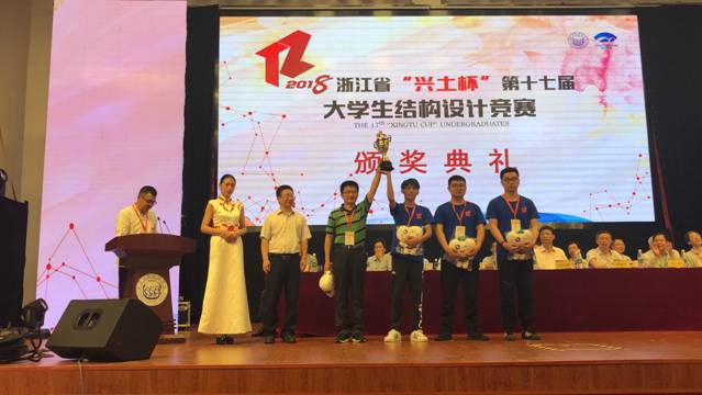 2018年5月11日至5月13日,浙江省“兴土杯”第十七届老员工结构设计竞赛暨全国老员工结构设计竞赛浙江省分区赛在同济大学浙江公司成功举办,共有来自浙江大学、浙江工业大学、宁波大学等48所高校的100支参赛代表队参赛。公司选派两支代表队参赛,由永利65335com经理姚谏亲自担任领队带队出征,在土木工程专业沈骅、楼旦丰两位老师的共同指导下,徐铁、邵银熙、赵佳皓队的参赛作品《七七七七》突围而出,实现历史性突破勇夺特等奖,范年柯、钱凌杰、王榕任队的参赛作品《杰婕高飞》夺得最佳创意奖并获三等奖。