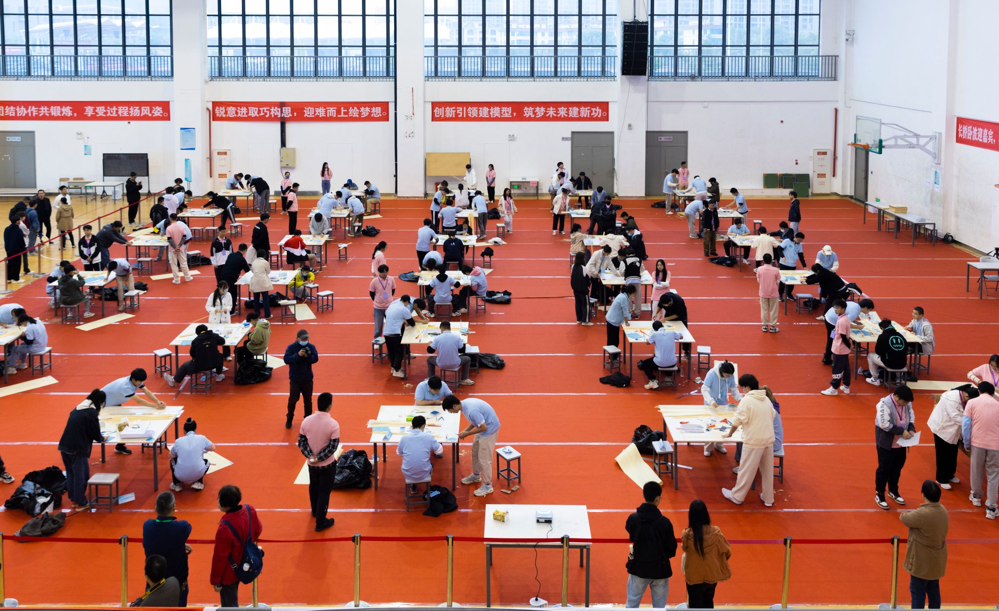 比赛现场,参赛选手们围绕杭州市第19届亚运会板球场馆主题,利用给定的竹皮、竹杆、工具,将理论知识成功应用于实际场景中,通过竹材加工、杆件打磨、节点粘合、模型拼接等一系列操作,用一双双巧手在规定的六个小时内将竹材巧妙地转化为一个个缩小版的看台雨棚模型。竞赛既考验了参赛者的结构设计知识,又锻炼了大家的动手实践能力和团队协作意识。