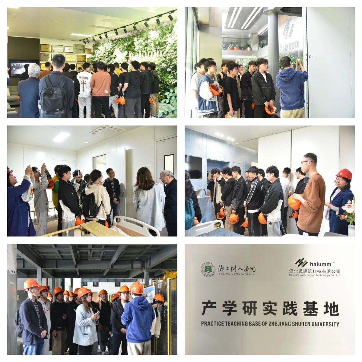 师生们先后到汉尔姆“浙江省建筑工业化产业基地”,以及杭州市“绿色低碳工厂”,深入了解了高精度装配式绿色建筑部品部件的智能制造流程,来到汉尔姆自主创新的“分层框架刚性支撑钢结构装配式建筑”建筑工地,实地观摩现代施工建造技术。亲身体验装配式酒店、装配式住宅公寓建筑、装配式适老和康养建筑等整体集成解决方案,特别是在“汉尔姆装配式医疗康养绿色低碳建筑体验中心”,被其独特的“医科+工科、医院+工厂、医生+工程师”的“医工融合”创新模式所吸引,纷纷驻足观察、询问交流。在装配式住宅公寓建筑,亲自触摸到看似木质的钢结构墙面时,师生们频频惊叹于全钢材质装修的神奇之处,多次感叹“看起来像是木质的,摸起来也像是木质的”。此次现场观摩学习不仅拓宽了员工们的视野,也激发了对建筑产业高质量发展的憧憬和向往。