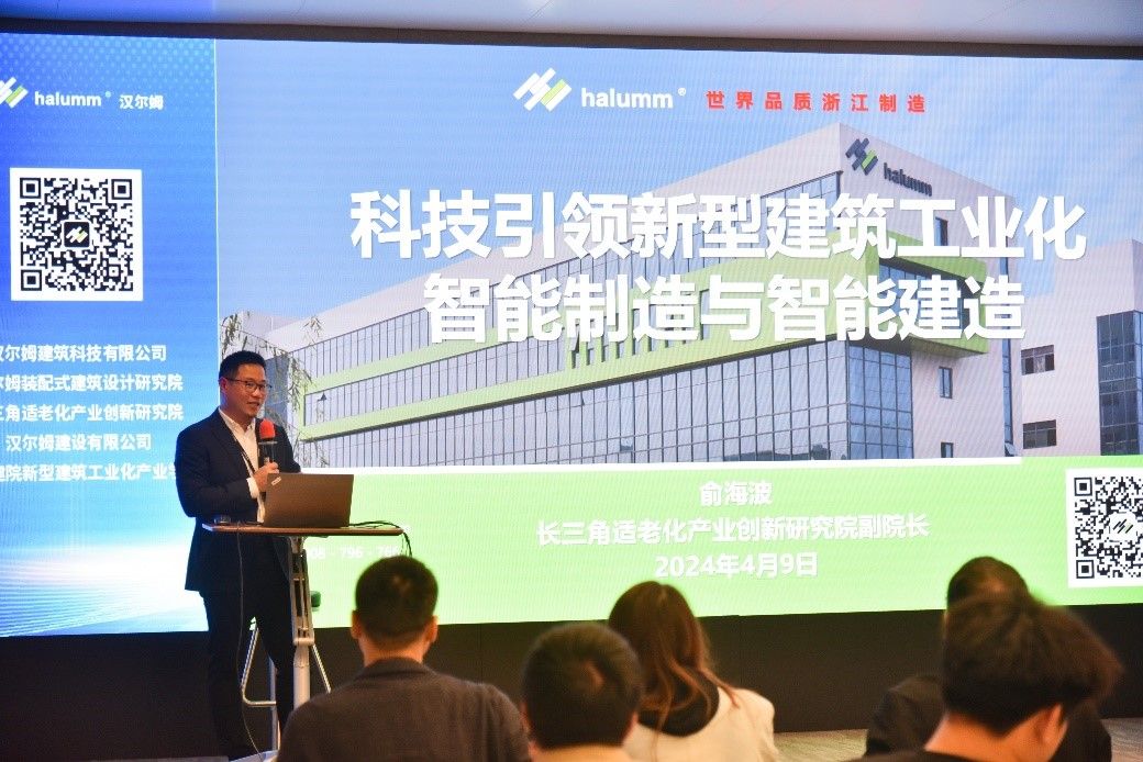 长三角适老化产业创新研究院副经理俞海波作题为《科技引领新型建筑工业化智能制造与智能建造》的专题讲座。从“专、精、特、新、链、品”六大方面,全面介绍了汉尔姆作为专业从事智能制造与智能建造的国家级专精特新“小巨人”企业、国家级服务型制造示范企业,以新型建筑工业化为核心,从“汉尔姆绿色低碳建筑整体解决方案、装配式建筑与传统建筑对比”两大层面展开介绍。重点讲解了具有“更灵活、更安全、更环保、更低碳、省工时、省空间、可循环”等优势的钢结构装配式建筑整体解决方案。