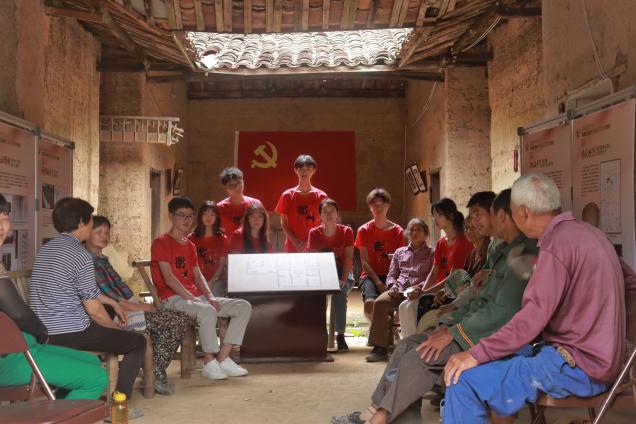 这里四面环山,竹林茂盛,小溪潺潺。走了许久,才在一片绿林中依稀分辨出几座泥墙。跨过门槛,我们看到了一段段静止的历史。我们怀着沉重的心情参观了当年游击队员休息的小屋、厨房,参观了当年地下党领导人高展同志工作的地方,并从当地人的口中了解到在当年参与抗战的军人中还有一位在世,遗憾的是这位老兵已无法与我们进行面对面的交谈。当地村民听说我们想了解浙闽边城工委的历史,非常热情得和我们展开了交谈!而后我们对旧址的议事厅与天井进行了测量,记录下相关数据,希望在接下来此处的建设中能给出一点专业的建议。