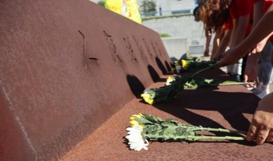 我们的第一站是江山烈士纪念馆。江山烈士纪念馆位于市区西山景观休闲带最南端,东侧靠西山路,东北接西山公园,东南、西北侧邻公墓。7月8日下午,灼灼烈阳难掩内心澎湃,映山红小队参观了纪念馆,并向烈士们敬献了鲜花,深切缅怀他们的不朽功绩。