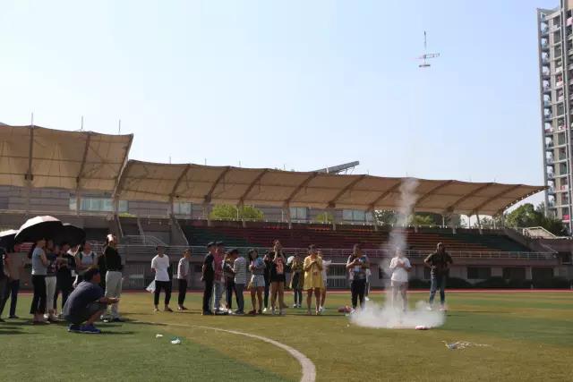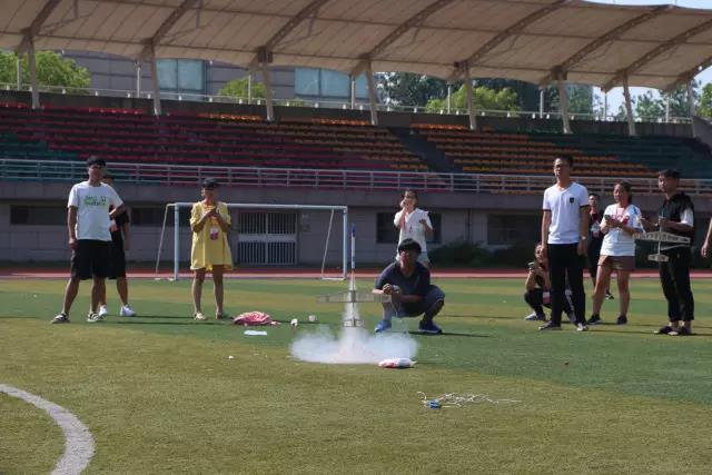 3、2、1,按下开关,随着“噗”地一声,火箭发射了,飞机的尾部顿时有着一圈白烟,空气中也弥漫着淡淡地火药味。火箭发射的那一刹那,很是震撼。