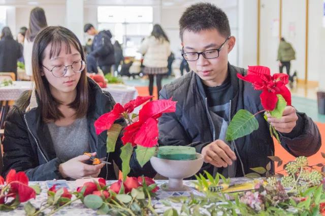 今天下午2:00,由公司举办的“首届校园创意插花大赛花言花语”在北校区体育馆内准时开赛。经过层层选拔,来自公司各个公司的优秀选手齐聚一堂,共同与大家分享插花的艺术。在别人紧张地买买买的日子里,各位参赛选手们都很认真,在这里有条不絮地插花。