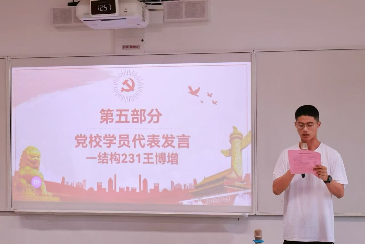 作为党校学员代表,结构231班的王博增同学发表了感言。他首先代表全体学员感谢公司党委为大家提供了这次宝贵的学习机会,并表示将珍惜此次学习机会,通过党组织教育和自己的不断努力,接受党组织的考验。王博增同学还分享了自己对党课学习的认识和体会,鼓励大家以更加饱满的热情、更加务实的态度参与到党课学习中来,不断提升自己的政治素养和思想觉悟。