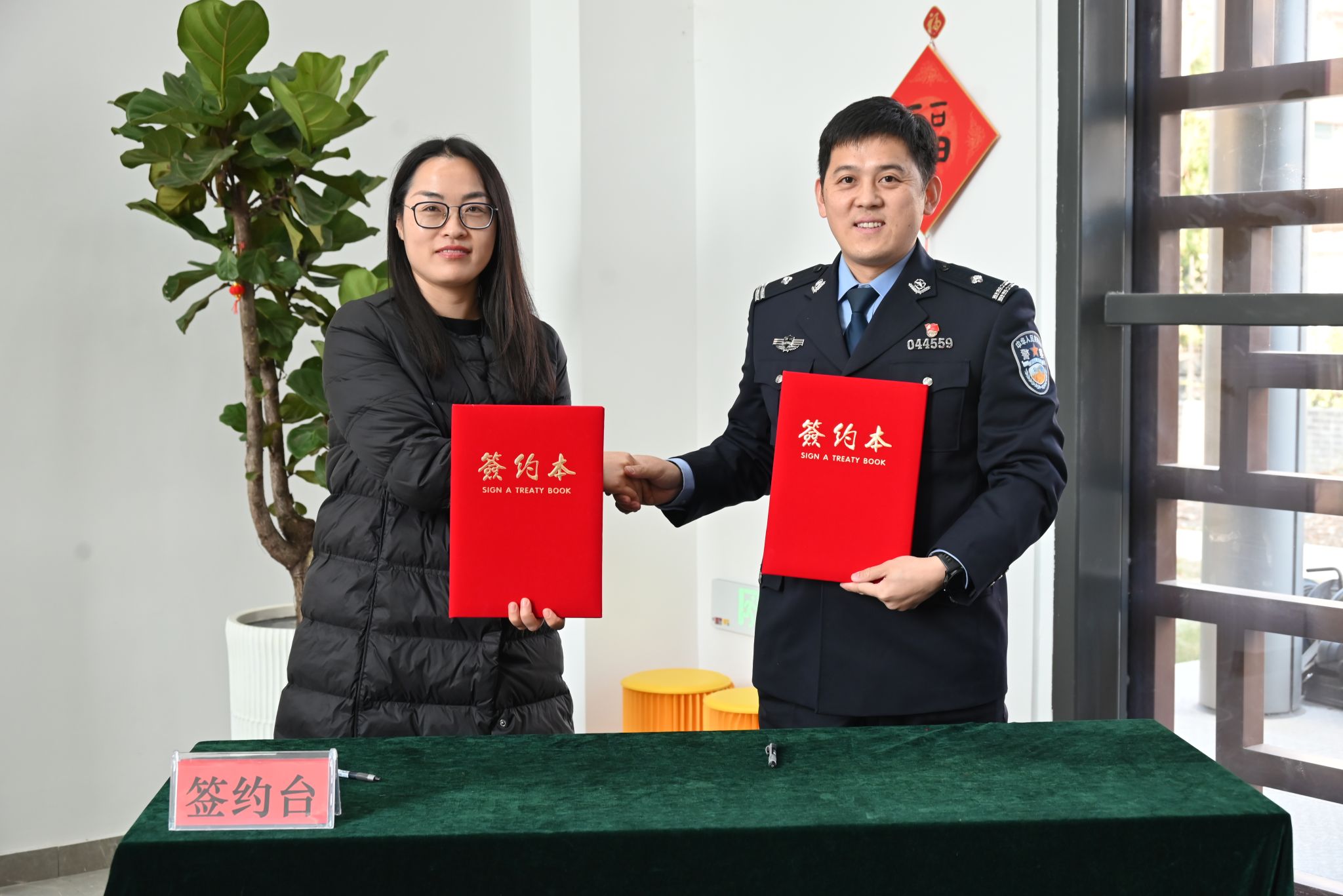 第三阶段,双方代表共同签署《党建共建合作协议书》,进行“党建共建基地”授牌,及开展聘任宸阳书院员工党员代表“反诈小能手”仪式。
