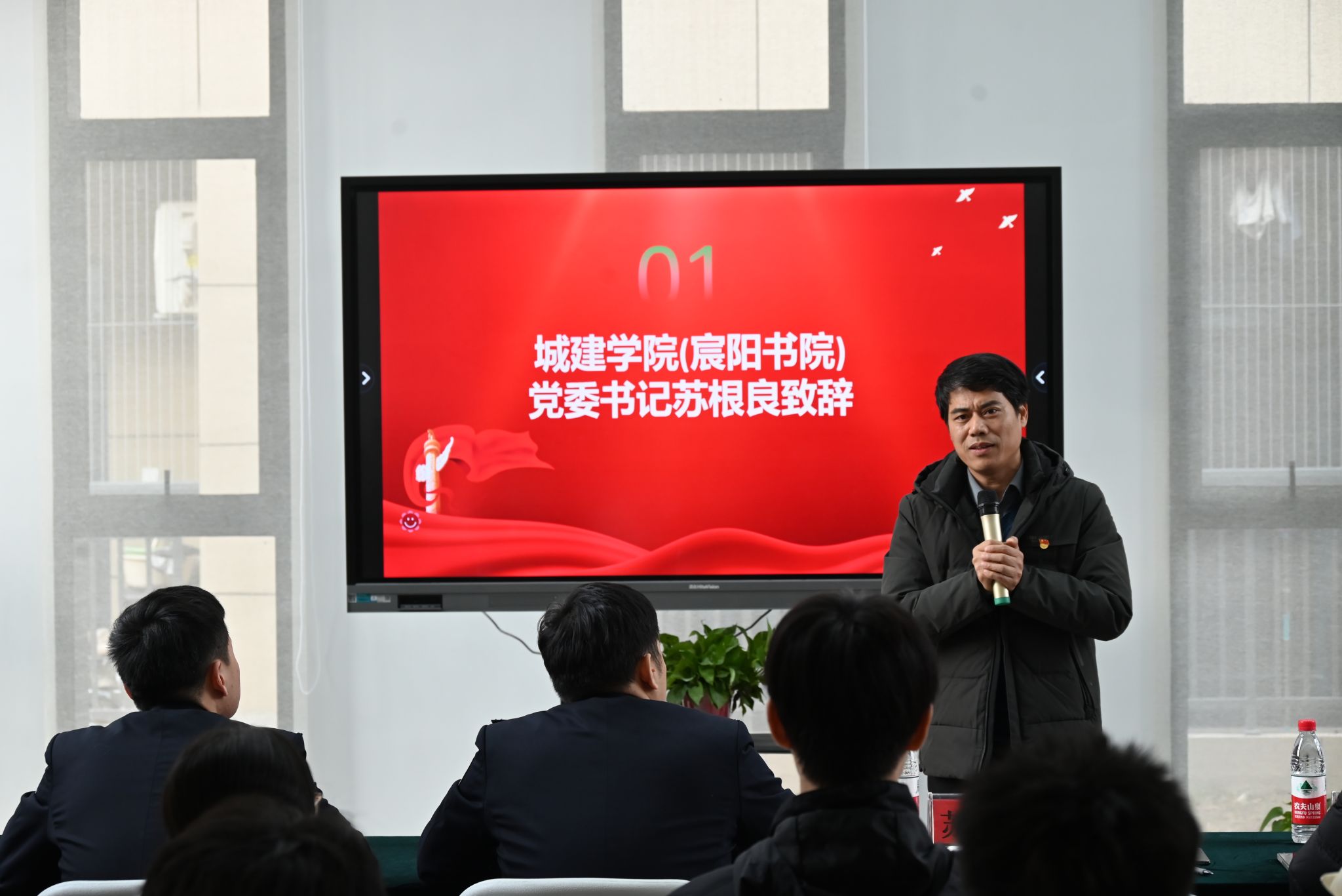 仪式开始,公司党委书记苏根良致辞。首先简要介绍了公司创办以来的发展历程和公司概况,他要求书院员工党支部学习贯彻习近平总书记2004年来校视察的重要讲话精神,认真落实习近平总书记关于“新时代枫桥经验”的重要指示精神,通过党建共建,推动书院基层组织建设,提升书院治理效能。同时,对于此次党建结对共建提出三点建议。一是要充分认识党建结对共建的重要意义;二是要充分保障党建结对共建工作扎实有效开展;三是要充分彰显党建结对共建的时代价值。希望双方党支部以此次共建为契机,充分发挥各自的资源和优势,开展深入合作,推动平安校园、平安书院建设,并在各领域建设一批标志性成果。