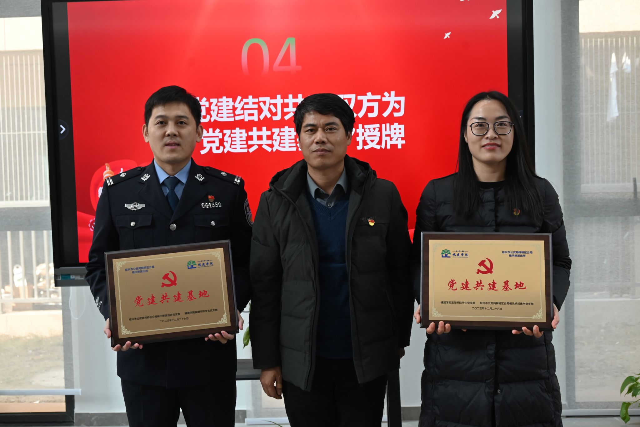 为进一步巩固深化学习贯彻习近平新时代中国特色社会主义思想主题教育成果,创新基层党建工作载体,构建校地优势互补、资源共享、共同发展的“党建共同体”新格局。2023年12月26日下午,永利65335com宸阳书院员工党支部与绍兴市公安局柯桥区分局杨汛桥派出所党支部在永利65335com(宸阳书院)惠风园师生活动中心举办了党建结对共建签约暨党建共建基地揭牌仪式,公司党委书记苏根良、党委副书记夏立芬、杨汛桥派出所所长兼支部书记张丹波、副所长王汉斌和金良警官以及宸阳书院各员工支部书记和员工党员代表参加。