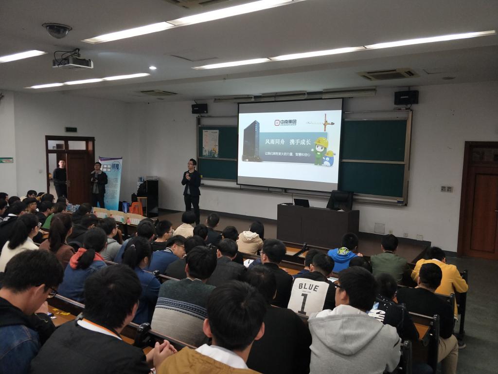 中南建设集团创建于1984年,旗下产业主要涵盖工程建设、文化创意、金融投资、地产商贸四大领域。下设建筑公司、幕墙公司、钢结构公司、装饰公司、中南卡通公司等分支企业,是建筑行业中的领航者,连续多年入选中国民营企业500强。参加本次专场招聘会企业领导有中南集团钢结构公司办公室主任王伟峰,幕墙公司招聘经理李若奇,集团培训经理李一鸣等。