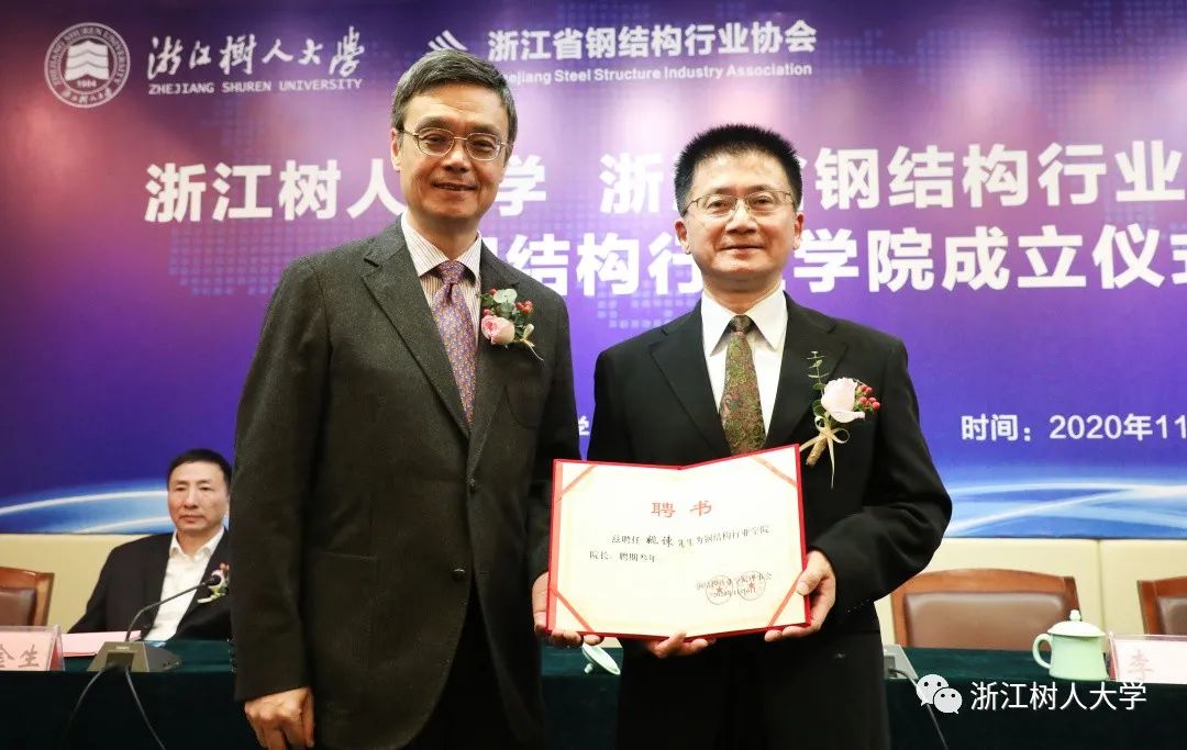 钢结构行业公司的成立,恰逢临近树大建校36周年校庆日,是喜上加喜。回顾36年的历程,我们始终围绕“地方性”和“应用型”,致力于高质量应用型人才培养。2016年,公司确立了以“行业公司”为抓手的应用型院校建设路径,紧紧围绕服务浙江“八大万亿产业”和“四大历史经典产业”的主轴,与浙江省民政厅、华为技术有限公司、浙江核新同花顺网络信息股份有限公司、树兰(杭州)医院、会稽山绍兴酒股份有限公司、浙江红石梁集团等政府部门及行业龙头企业展开合作,至今,已成立了“浙江省养老与家政 产业公司”“华为信息与网络技术公司”等12个行业公司,构建了与政府、行业协会、企事业单位及国外高校共建行业公司的“四轮驱动”模式,形成了专业、课程、基地、教学团队、科研“五位一体”产教融合的人才培养模式,探索了“共同构建治理结构”“共同制定培养方案”“共同组建教学团队”“共同实施教学管理”“共同打造产学研基地”“共同受益”的“六个共同”创新协同育人机制,探索出一条应用型人才培养的创新路径。今天,由省钢结构协会搭台、联合高校和钢结构企业共同组建的行业公司,进一步促进产学研融合发展,为行业公司建设与钢结构人才培养提供了一个新的路径。