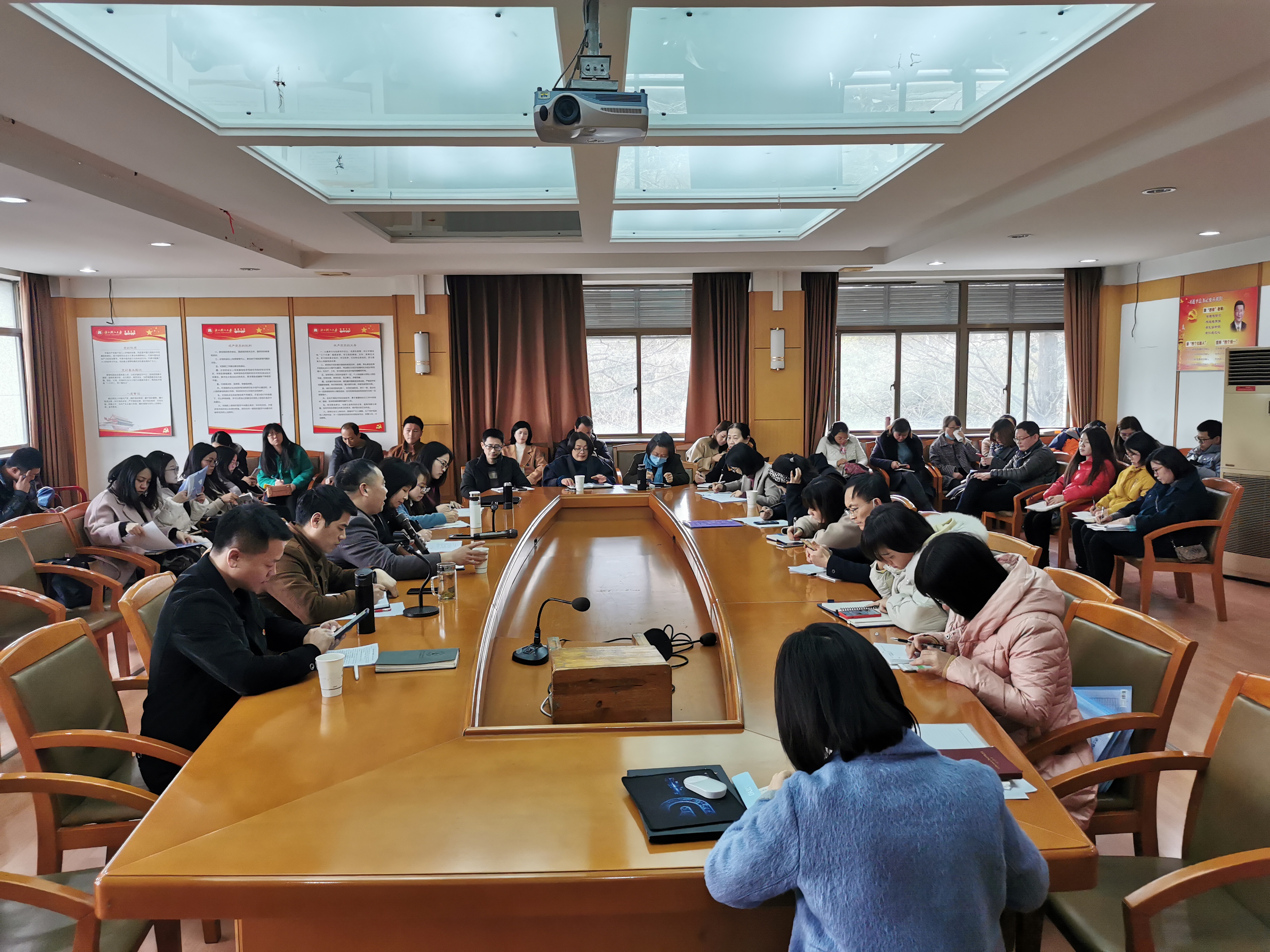 随后分管教学的副经理陈丹维博士就本学期日常教学工作进行部署,特别强调了本学期教学周的调整以及毕业环节。由于本学期授课工作主要将在新校区进行,新校区的实验室搬迁工作需要跟进并落实。分管员工工作的翁就勇副书记就开学准备工作、毕业重点工作、员工党建工作等方面传达了公司相关会议的精神与落实情况,特别要求在疫情常态化下进行统筹安排。分管宸阳书院员工工作的夏立芬副书记从新学期员工报到工作和书公司党建工作入手,介绍了书院目前的工作和未来的设想。