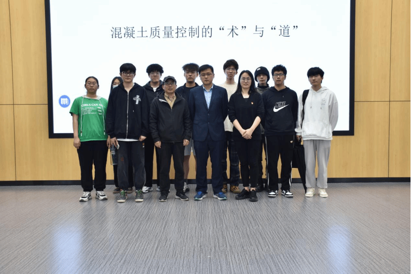 在第二个环节,朱老师生动讲述了混凝土质量问题伴随着个人的成长之“道”。朱老师坦诚、大方地和同学们分享了自己的“黑历史”,用一张张残破、不合格的施工现场照片,告诫大家施工过程中严格把控混凝土质量的重要性,并从质量、设计、强度及施工四个方面进行讲述,进一步深化了同学们对混凝土质量控制工作的专业认识。朱钢明老师深情地与大家分享自己的成长心得,告诫同学们想要有专长就得肯吃苦,他说,要敢于设想与实践,做梦都得思考问题!他很认真地告诉同学们,行业是有前途的。