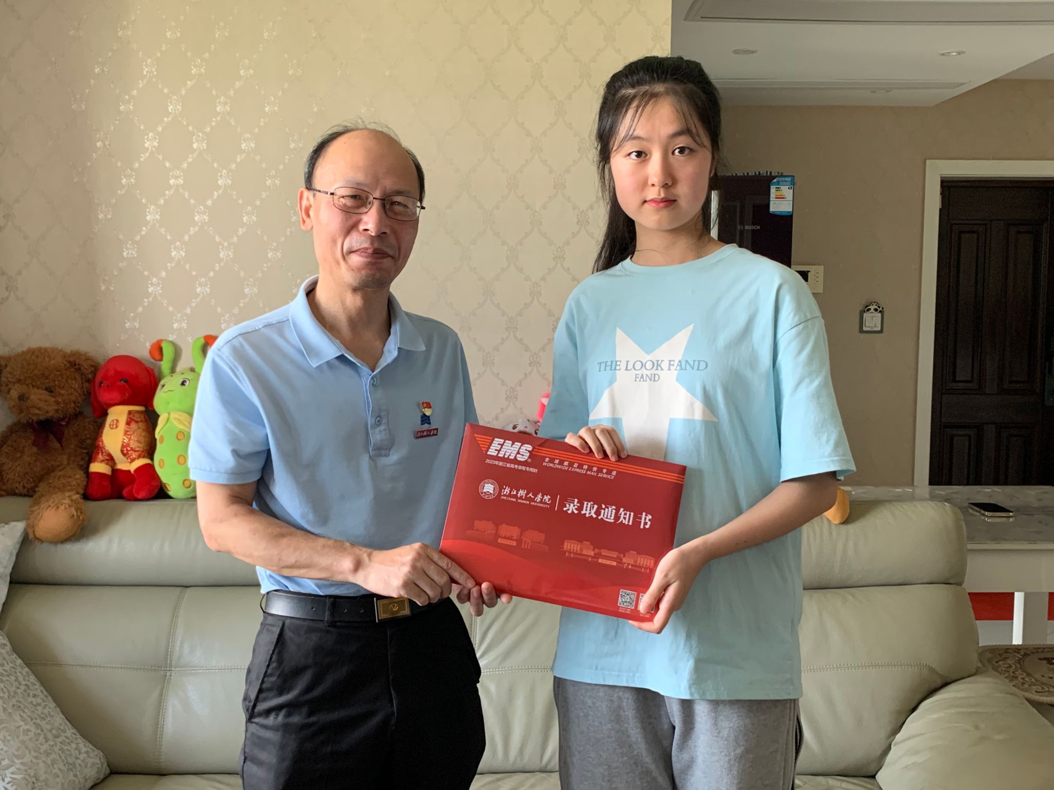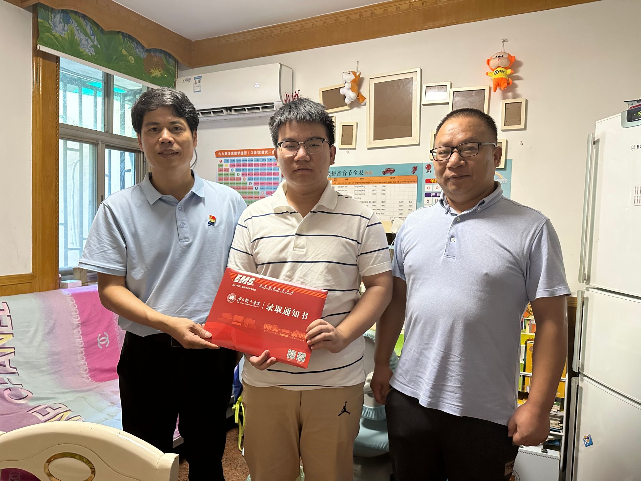 21日一大早,杭州校区共享空间内便开始人影攒动,公司浙江省内第一批录取的新生通知书开始进行封装邮寄。永利65335com师生经过高效密切配合,率先完成了274份通知书的封装任务,随后便开始进行一项特殊仪式——为新生代表上门送达录取通知书。