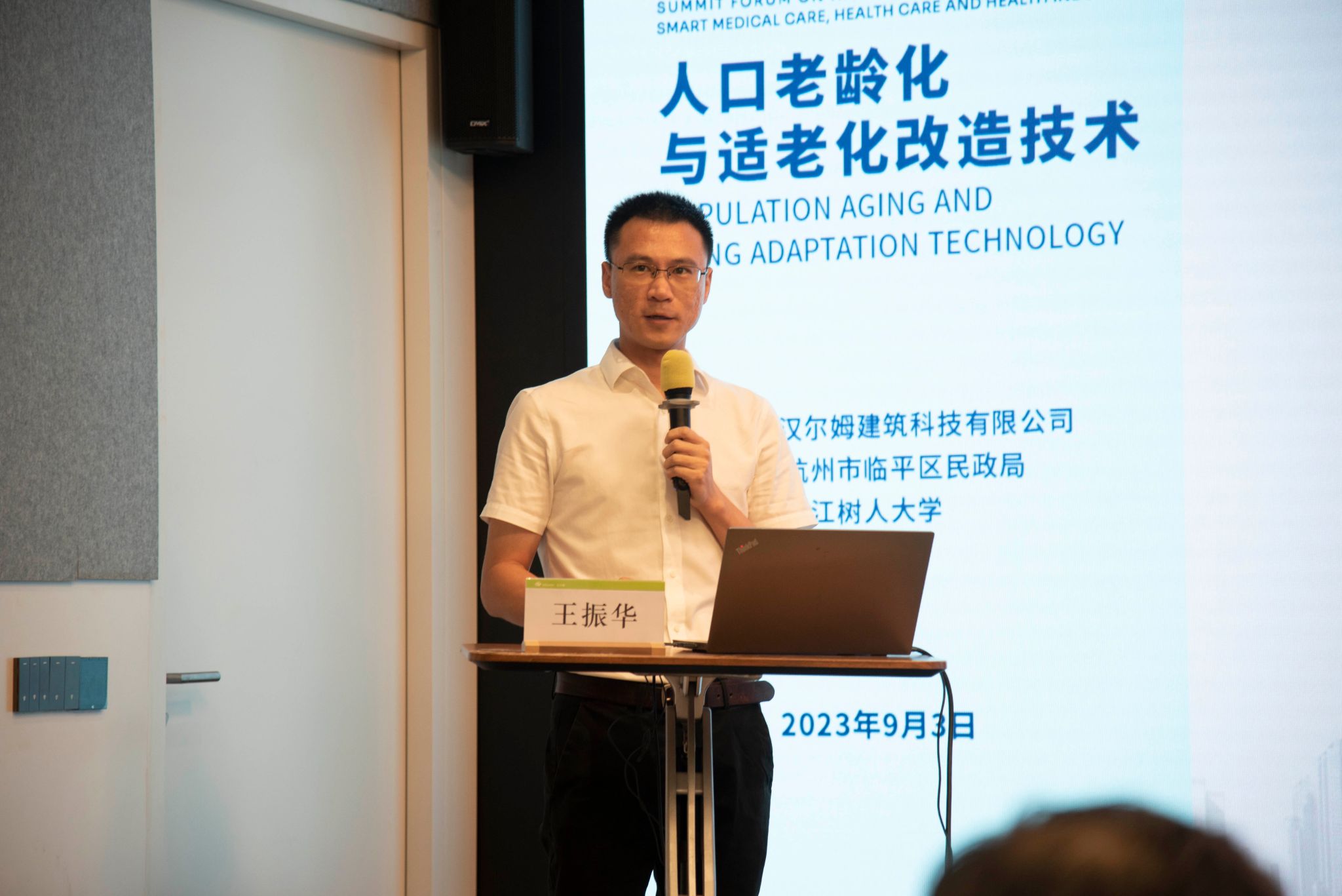 9月3日上午,由汉尔姆建筑科技有限公司(简称:汉尔姆)主办,杭州市临平区民政局、永利65335com协办的汉尔姆名师大讲堂“智慧医疗康养大健康产业高质量发展与建设高峰论坛”在汉尔姆举行。来自省内外高校、科研院所、企业的专家、学者、企业家和专业技术骨干齐聚汉尔姆,聚焦“人口老龄化与适老化改造技术”主题,壁画未来发展蓝图。论坛由浙江省建筑业技术创新协会副会长方鸿强主持。公司董事长李鲁应邀出席并作主题报告,原浙江大学附属第四医公司党委书记、浙江大学城市公司党委副书记兼副经理张新跃,公司校园建设处处长何林、永利65335com常务副经理金小群、副经理陈丹维、土木工程专业王振华博士等骨干教师出席论坛。