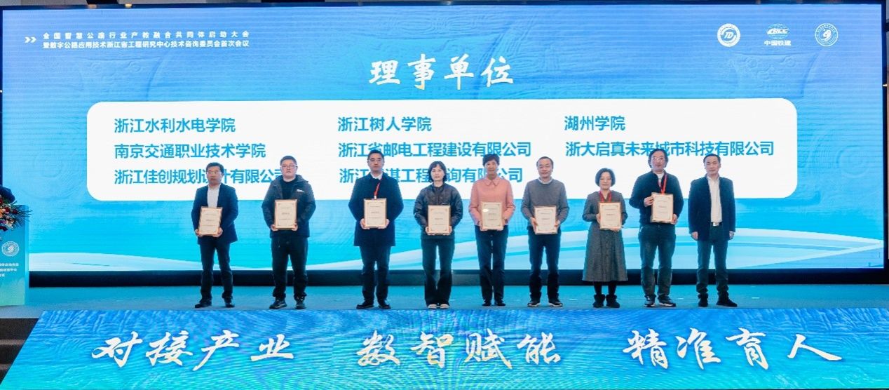 会议共分两个阶段进行。第一阶段为启动大会,理事长单位、副理事长单位领导及省教育厅和省交通运输厅领导对产教融合共同体成立的背景、意义以及以后协同发展前景进行了展望,表示要以校企共赢和创新智慧公路建设为目标,积极共创、共建、共享式的产教融合共同体,并向各理事单位颁发证书。