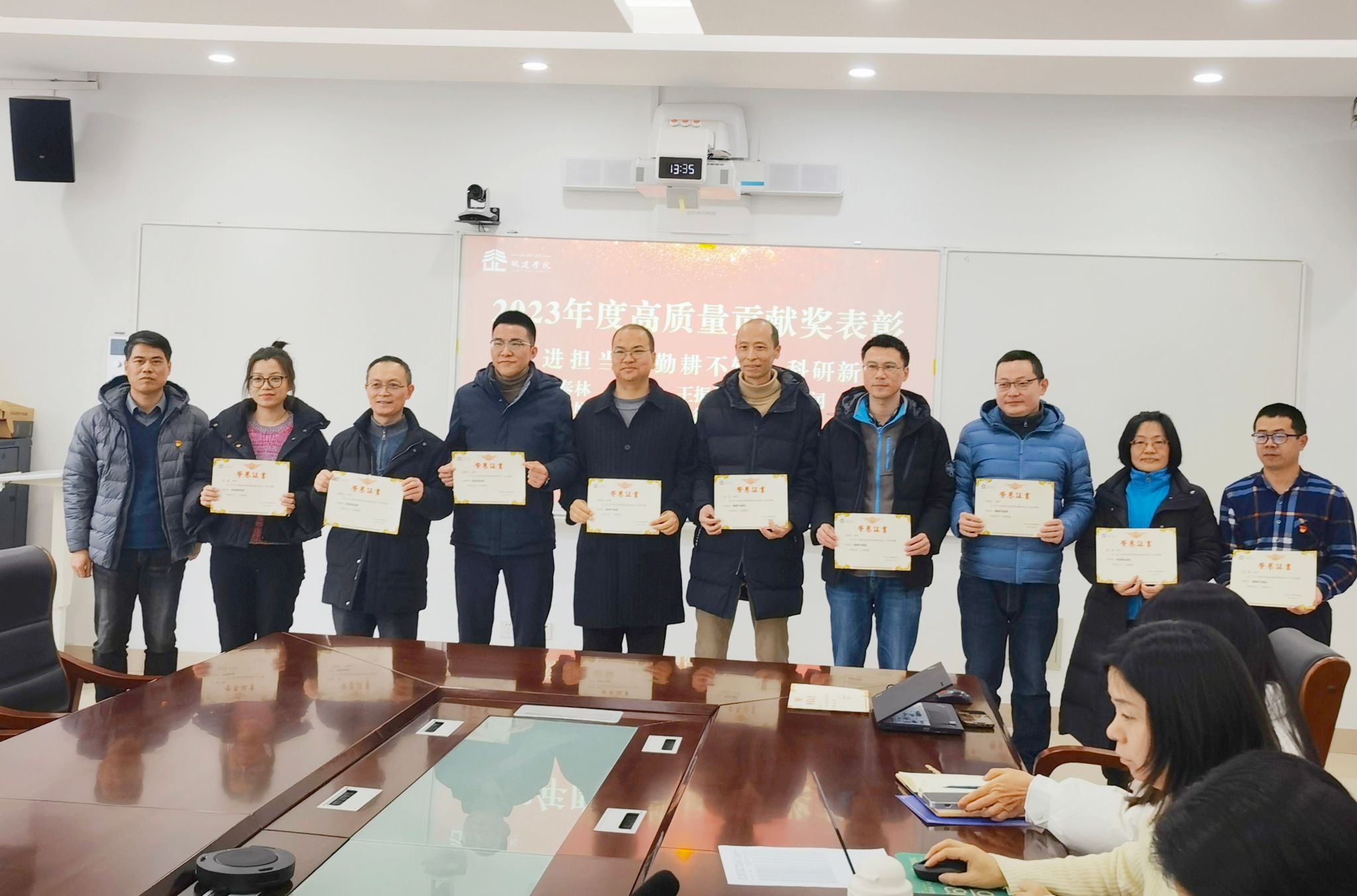 随后,常务副经理金小群宣读了2023年度“学习强国”“年度教工考核”“高质量发展贡献”等各项荣誉表彰文件,王军书记和公司领导班子成员为获奖优秀团队和先进个人颁发了荣誉证书。