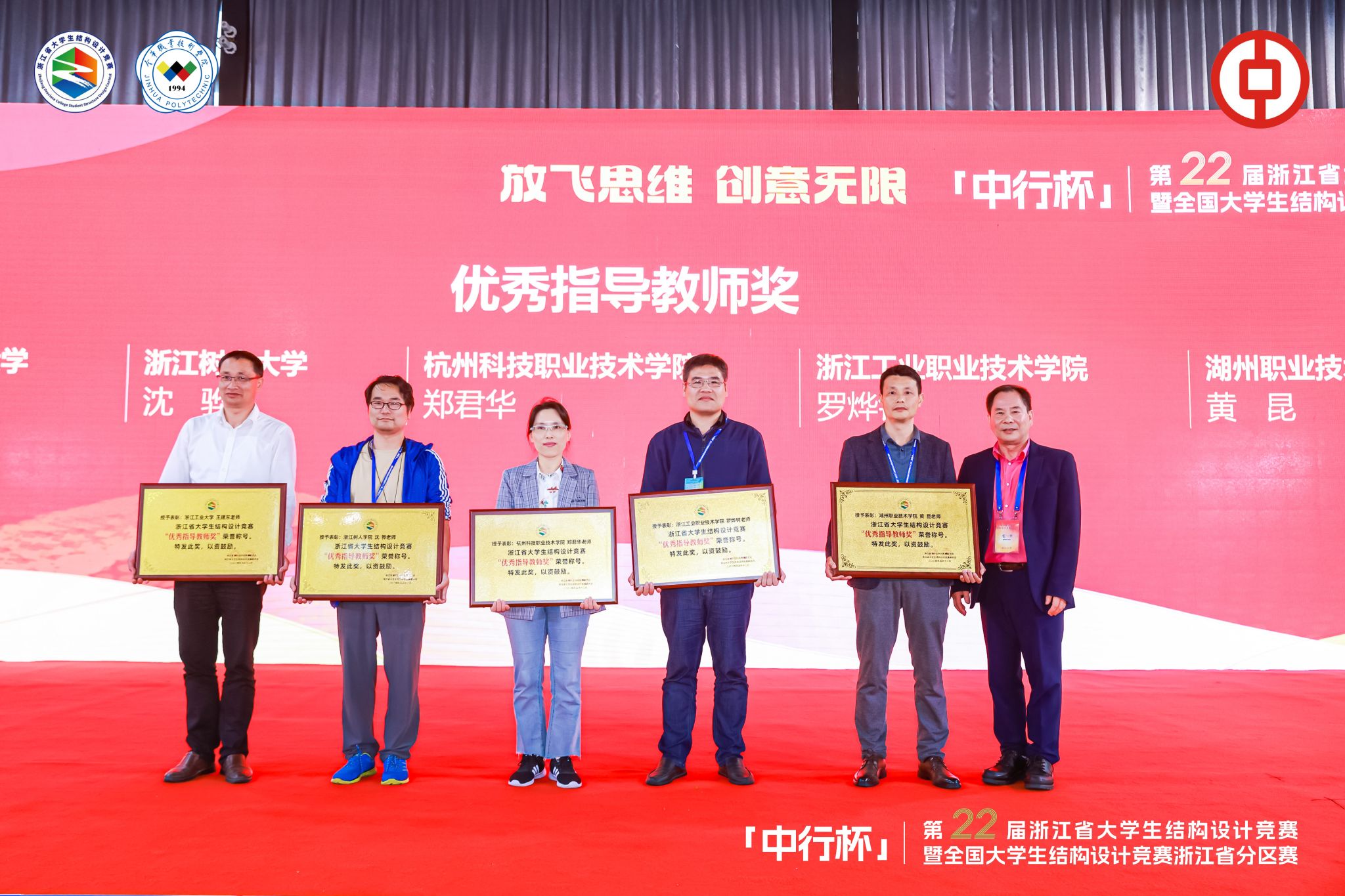 同时,在本次比赛中,永利65335com的沈骅老师被授予浙江省老员工结构设计竞赛“优秀指导教师奖”荣誉称号,此奖须得参赛8年以上并有着5次指导竞赛获得一等奖的经历,全省只有五个老师获此殊荣,三个专科,两个本科。