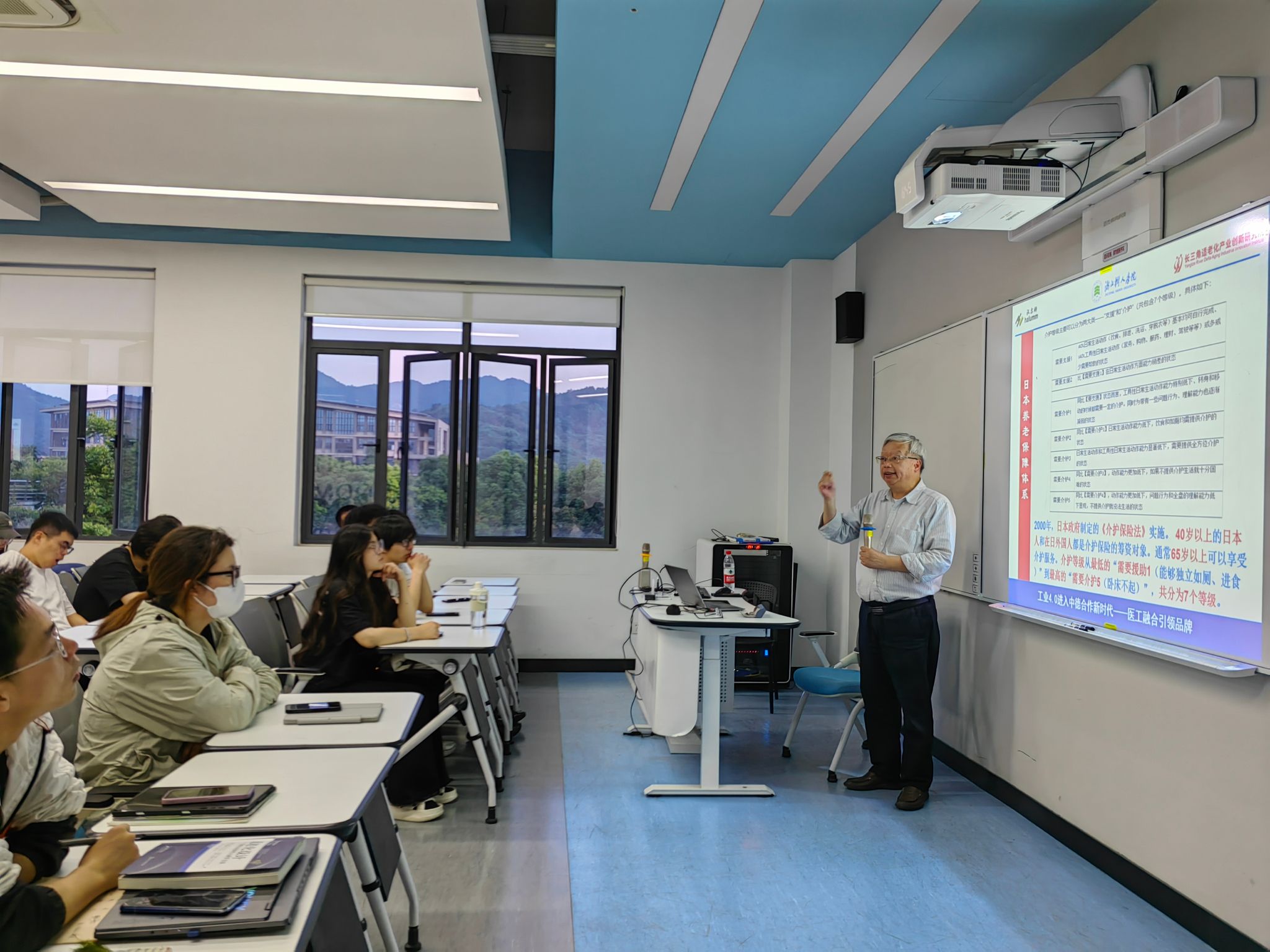 方鸿强教授级高工实践经验丰富,深耕专业多年,具有宽广的专业视野与敏锐的专业触觉,善于抓住发展的机遇且常怀感恩,这些特质在本次课程中得以充分体现。他以中国式现代化与积极应对人口老龄化为主线,阐述了在人口老龄化这个不可逆的浪潮下,如何根据中国特色识别问题、抓住机遇、调整战略,实现共赢。讲授过程中,既有基本概念的辨析、又有详实的数据与具体的案例,对照日本发展的轨迹,抽丝剥茧娓娓道来,逻辑清晰论证可靠。最后,他以自身实践为证,对中国目前的养老产业空间进行了分析,从技术上探讨了钢结构可变住宅的可行性与必要性,对颐养空间六要素进行总结。如果生命是一场向死而生的演出,那么如何有尊严的老去是值得我们服务与投入的事业。在感谢校企双方共同努力的同时,方总也呼吁员工将个人成才与公司成长同频共振,将医工融合下颐养空间的探索作为未来发展的起点与目标。最后金小群教授以“有深度、有高度”高度总结了本次课程,再次表达了对方总的感谢,感谢其一直以来对校企合作、团队建设、课程建设等方面不遗余力的支持与无私的分享,同时对课堂氛围给予了高度肯定。员工全程的高度关注与多次热烈的掌声也为本门课程的持续开设树立了信心,新学科背景下医工融合的创新、融合与发展的主题值得深度探索。