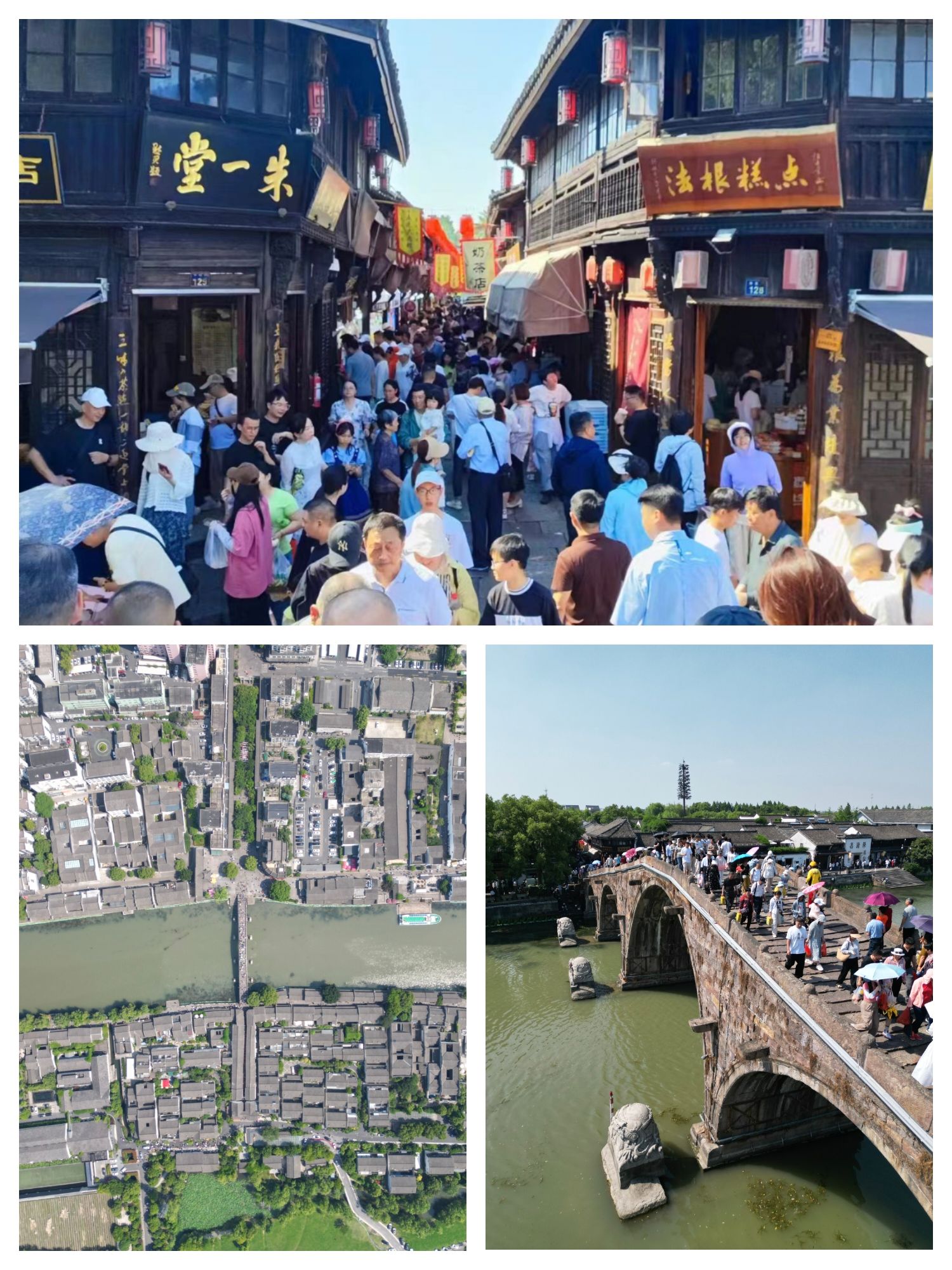 采摘活动结束后,教职工们还游览了塘栖古镇。古镇氤氲着热闹的人间烟火气,古色古香的建筑、静谧的水乡风光、香气四溢的美食,无不让人流连忘返。大家不时驻足拍照留念,定格美丽瞬间。