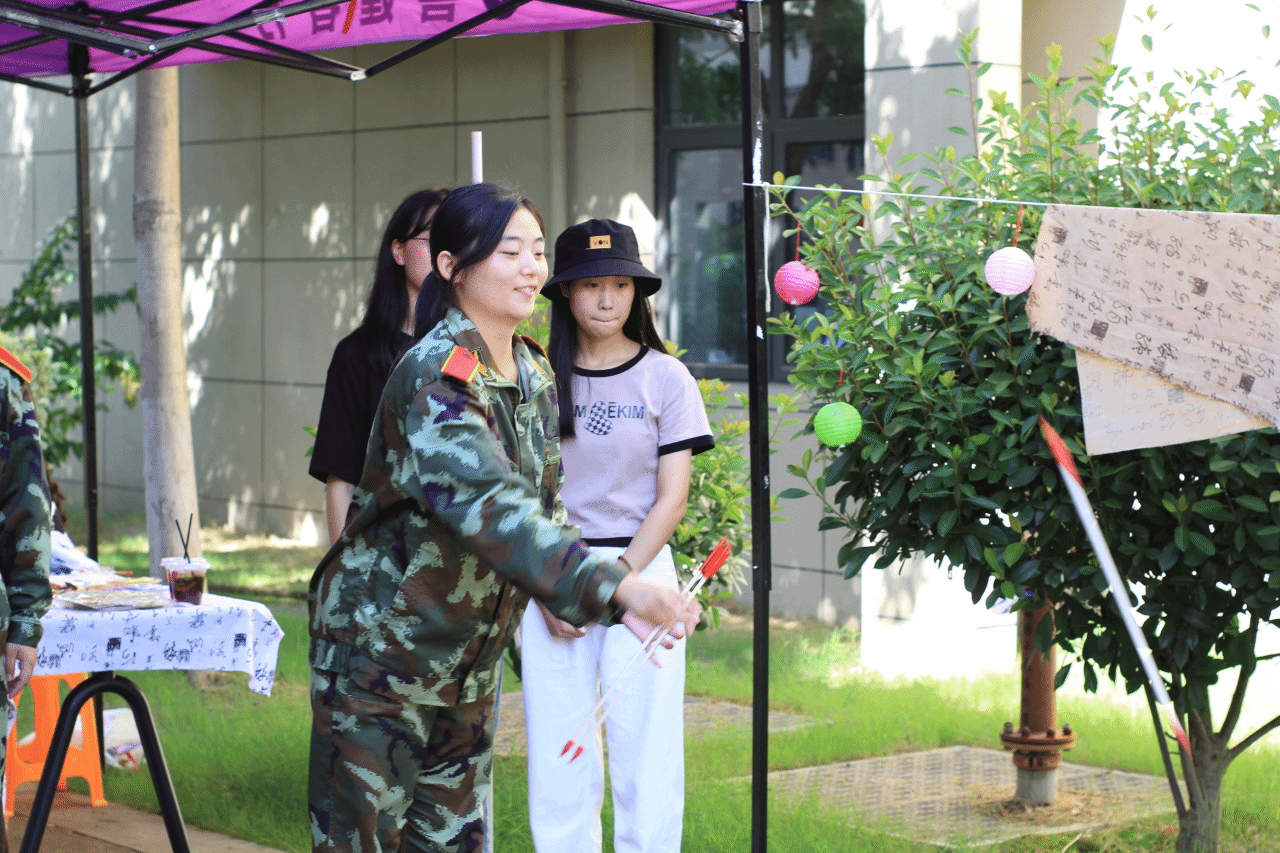 游园会活动内容丰富多彩,月宫投壶、圆月糕点品尝、灯谜猜猜猜、中秋香囊制作、祈愿墙等。诗情画意的古风灯随风摇曳,将书院装点得如诗如画,营造出浓厚的节日氛围。24级新生和学长学姐们一起穿梭在月宫投壶、猜灯谜等传统游戏中,以矢代箭,以壶代侯,英姿飒爽;在感受诗词古语魅力的同时,深入了解中秋节相关文化和历史知识。中秋祝福香囊和糕点品尝区,让同学们在感受传统文化魅力的同时,也品尝到了中秋佳节的甜蜜与欢乐。