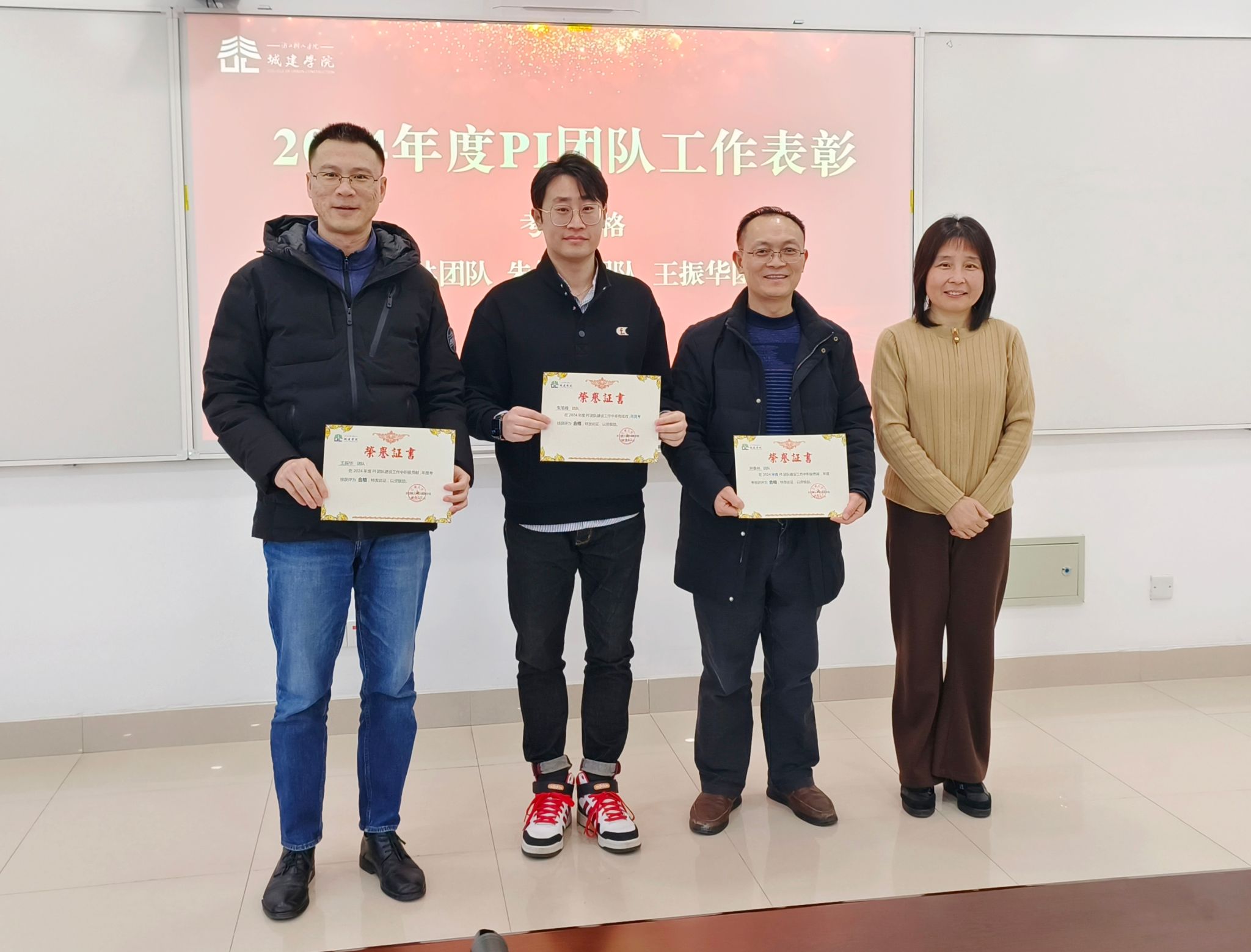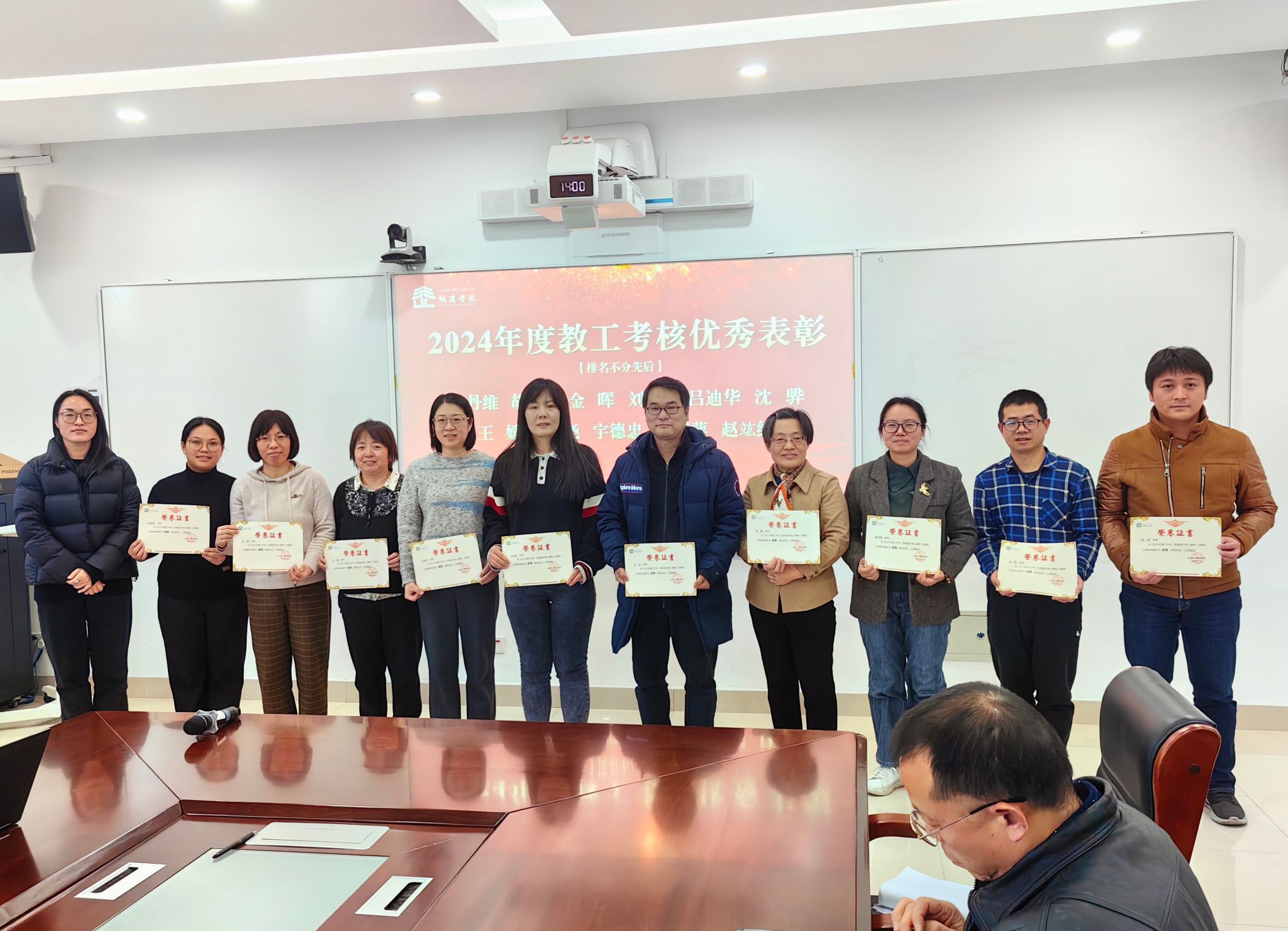 随后,副经理陈丹维宣读了表彰文件,王军携公司领导班子成员分别为在 2024 年度考核优秀的教职工、青年教师教学技能竞赛的获奖者,以及在 “揭榜挂帅” 高质量发展工作中表现突出的先进个人和集体颁发了荣誉证书。