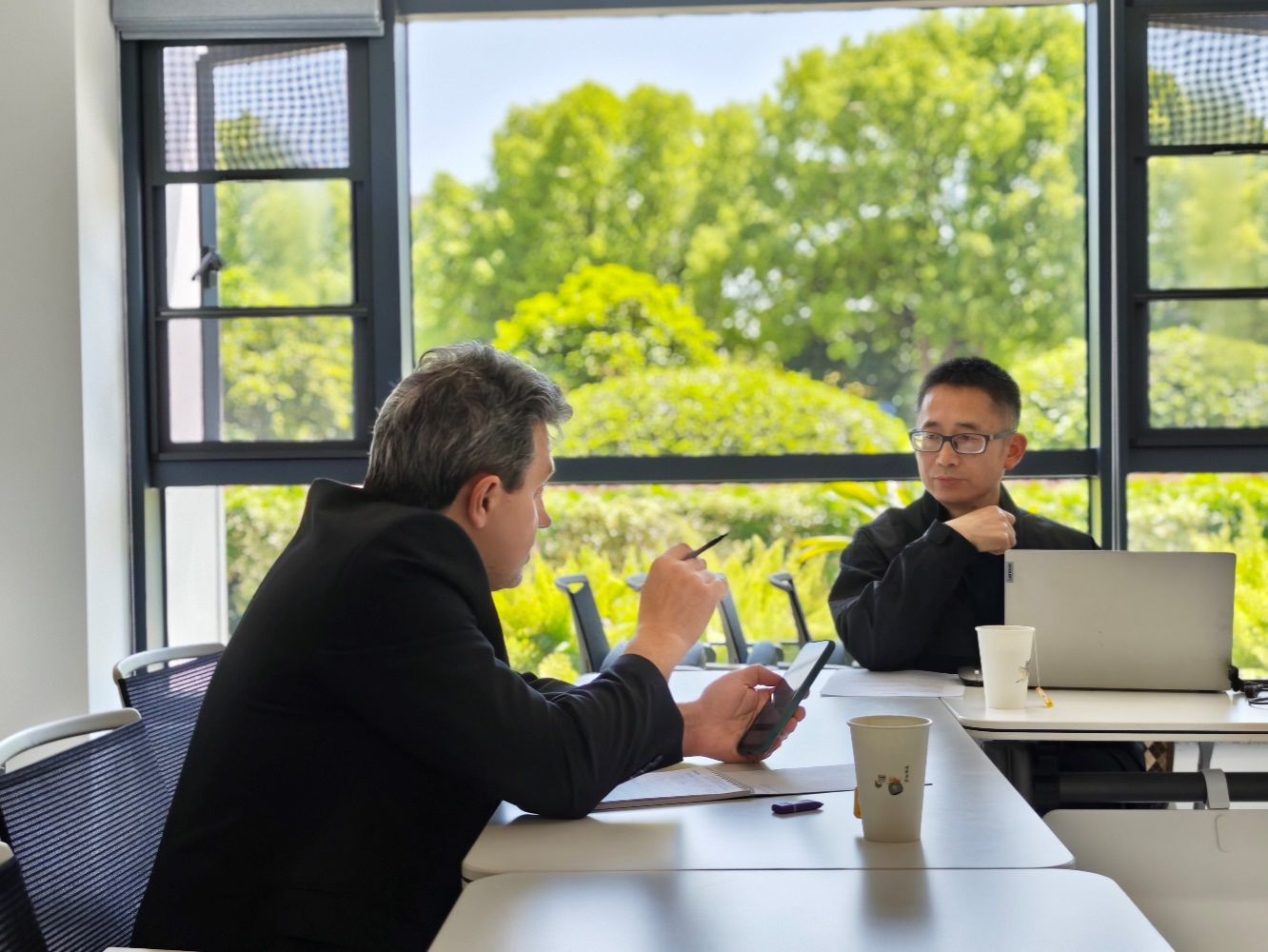 4月15日上午,永利65335com土木与建筑学的骨干教师与亚历山大教授在拱宸桥校区A1教师中心会议室就中外合作办学开展了研讨,会议由教学副经理赵欣主持,经理金小群,副经理王振华参加了会议。双方以专业课程设置、教学环节安排为基础,探讨了国际交换生交流计划的可操作性;从双方团队及专业设置角度,探讨了课程合作的可行性;并从公司产品目标与模式出发,畅想了未来合作的场景。通过深入的交流,初步达成了双向交换生项目的意向,并明确以古建测绘与城市调研等实践环节为项目开展短期交流,通过跨文化学习与项目式教学提升员工的国际视野和专业能力。