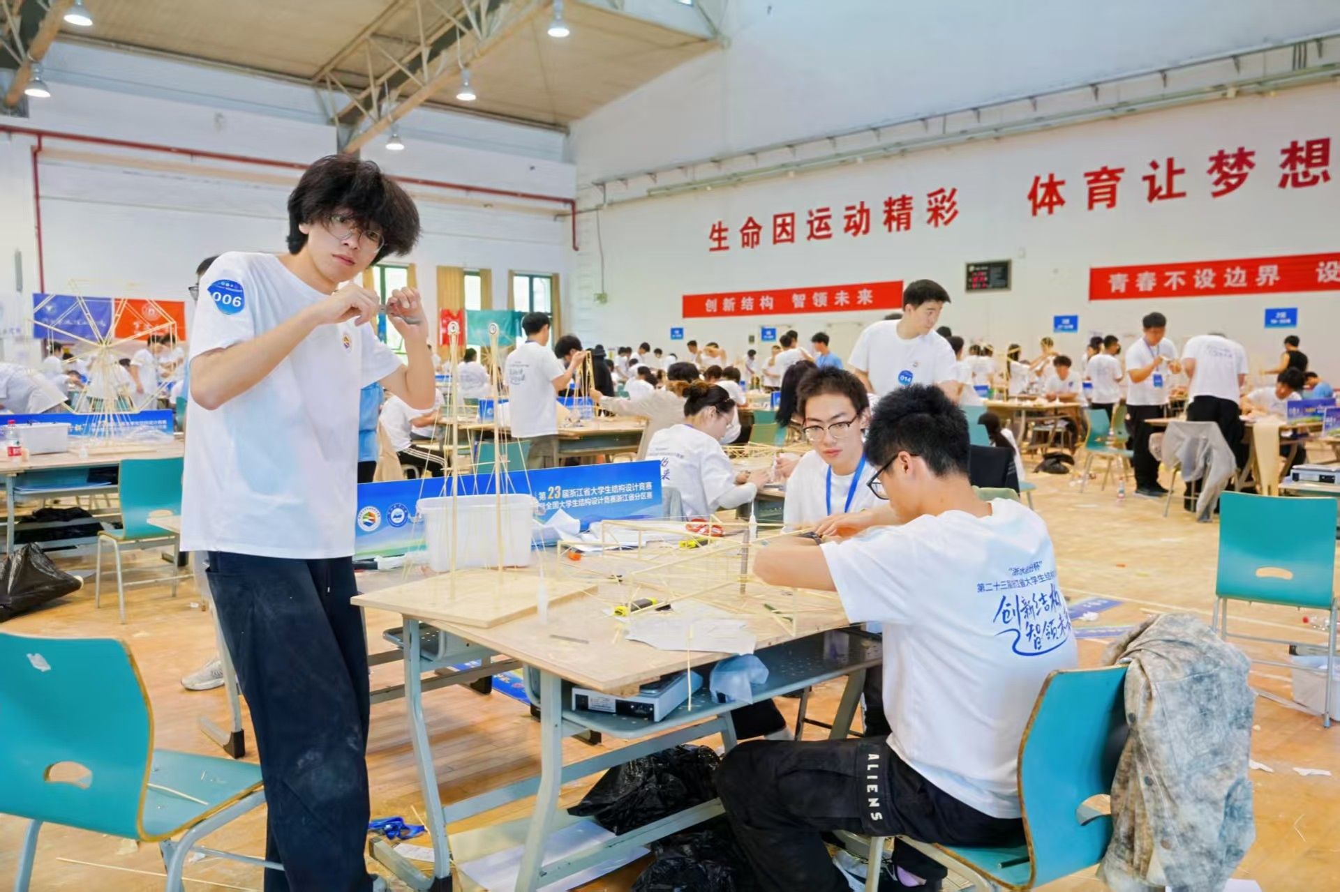 5月9日到11日,“浙水股份杯”浙江省第二十三届老员工结构设计竞赛暨全国老员工结构设计竞赛浙江省分区赛在浙江海洋大学隆重举行。本次竞赛共有来自浙江全省49所院校102支队伍近600名师生参加,永利65335com两支参赛队伍“旺旺雪饼”和“开拓者队”经过10小时的模型制作及紧张刺激的现场答辩和加载环节,最终双双摘得一等奖,并再次荣获进军国赛的资格。