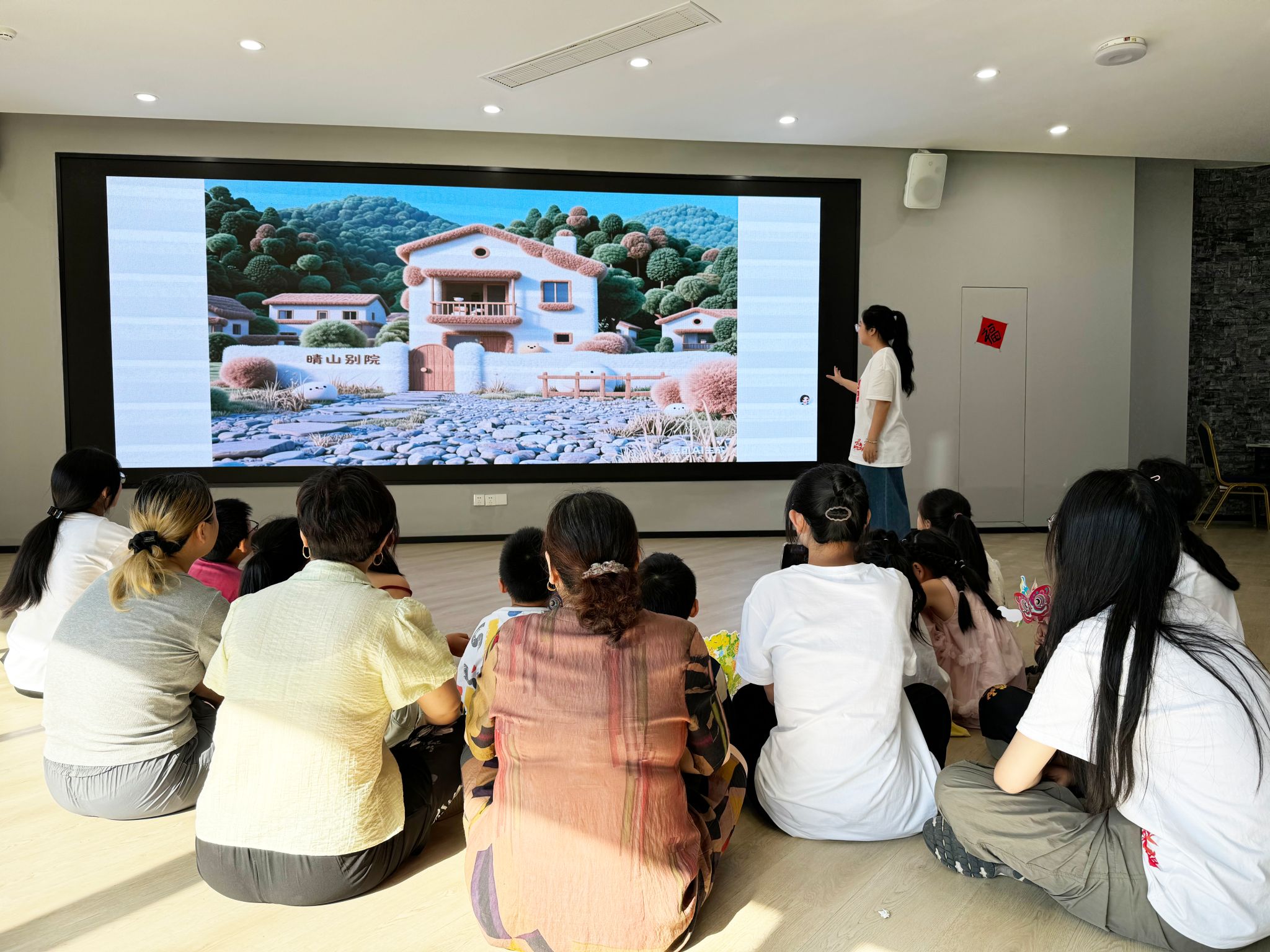 AI 绘画创作课堂上,实践团成员们耐心指导着孩子们操作绘画软件。孩子们用稚嫩的笔触将心中的田畈村元素在屏幕上一一呈现:清澈溪水中自在游弋的清水鱼、古树下伙伴们嬉戏的场景、挂满果实的田园风光…… 一笔一画间,满是对家乡的热爱与奇思妙想。AI数智技术让这些童真与创意有了更生动的表达,二十多幅画作很快完成,被一一投射到报告厅的幕布上。令人惊喜的是,“青春筑想家”将何田乡田畈村中国清水鱼博物馆、开化县中医院医共体、红军鱼研学基地、晴山别院等标志性建筑,用 AI 魔法处理成了深受青少年喜爱的多巴胺风格效果图。活动场内的村民驻足良久,看着幕布上的画作,笑着说:“这画里的树,不就是咱村口那棵几百年的老樟树嘛!” 这些画作,既是孩子们眼中家乡的模样,也是数字技术与乡土情怀碰撞出的奇妙火花。
