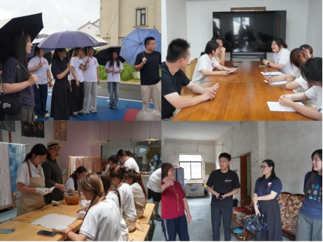 筑梦寻光实践队与谢径安农创文化中心的负责人们进行了交流,并从“传统技艺如何与现代农业技术嫁接”“农创项目可持续盈利模式”等问题展开。他们从政策扶持、资源整合角度,阐述了萧山区在推动“政企村农”协同模式中的顶层设计,强调通过农业产业补贴、人才返乡激励等政策,为农创项目落地提供保障,提出实践队可聚焦乡村非遗技艺的市场化转化,例如将植物染工艺与农产品包装设计结合,提升产品附加值等建议。此次座谈为实践队后续研究提供了政策视角与实操路径,也为校企合作搭建了沟通桥梁。