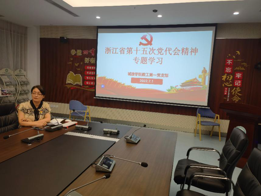 7月1日下午,公司教工一支部在图信大楼615会议室集体学习浙江省第十五次党代会精神,重温入党誓词,庆祝建党101周年。教工一支部所有党员教师参加会议,党支部书记胡敏萍主持会议。