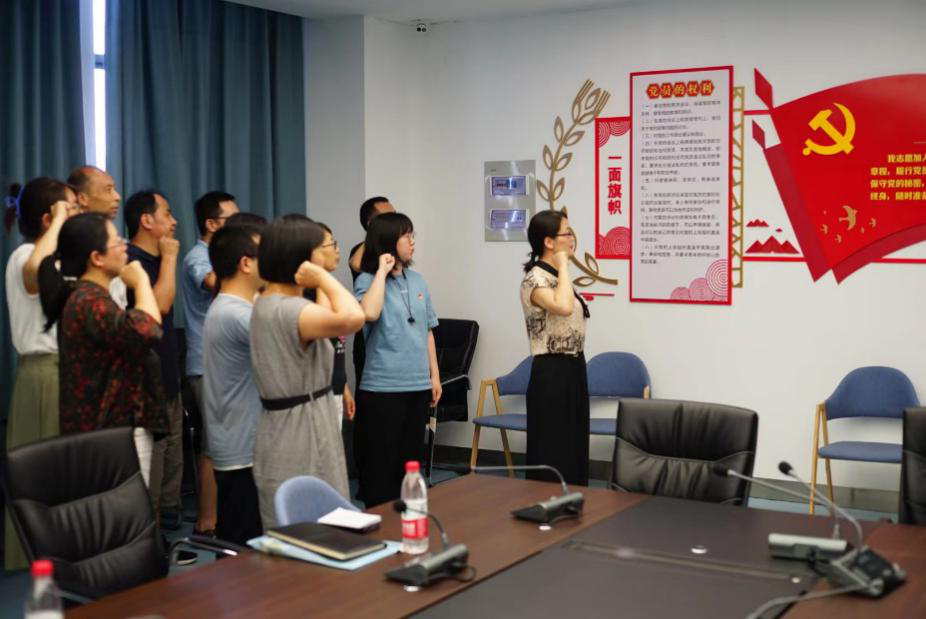 会议第二阶段,全体支部成员面上党旗,重温入党誓词,在中国共产党成立101周年的时间节点,开启新征程,不忘初心使命,砥砺前行。